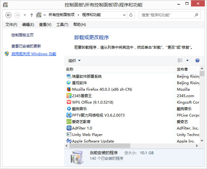 找到“程序和功能”下的“啟用或關(guān)閉Windows功能”。如圖: