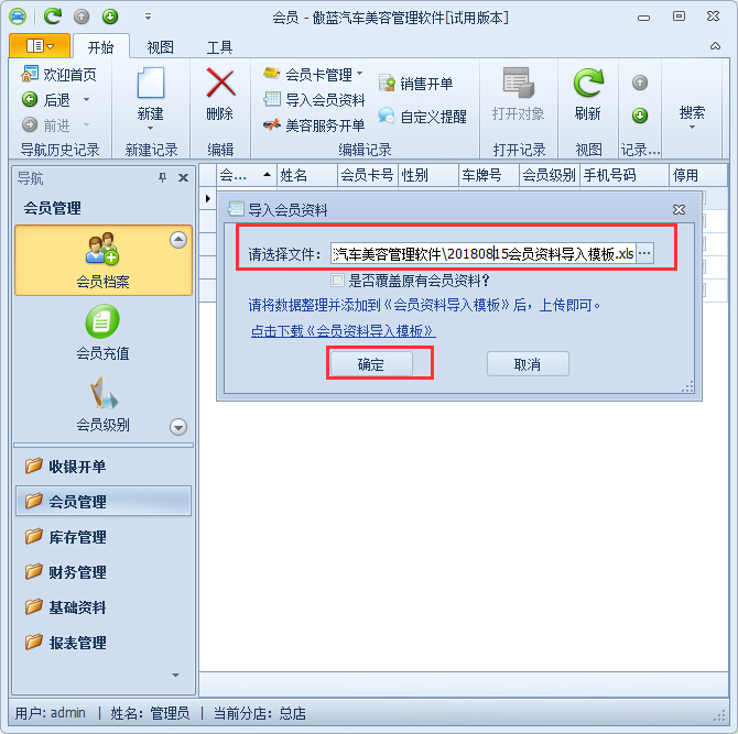 ④修改完成,就可以在傲藍(lán)洗車店會員管理軟件導(dǎo)入會員資料中選擇該excel表格將資料導(dǎo)入到軟件中,如圖: