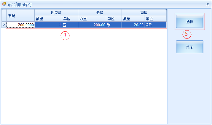 ○2 選擇一條布品庫(kù)存數(shù)據(jù)