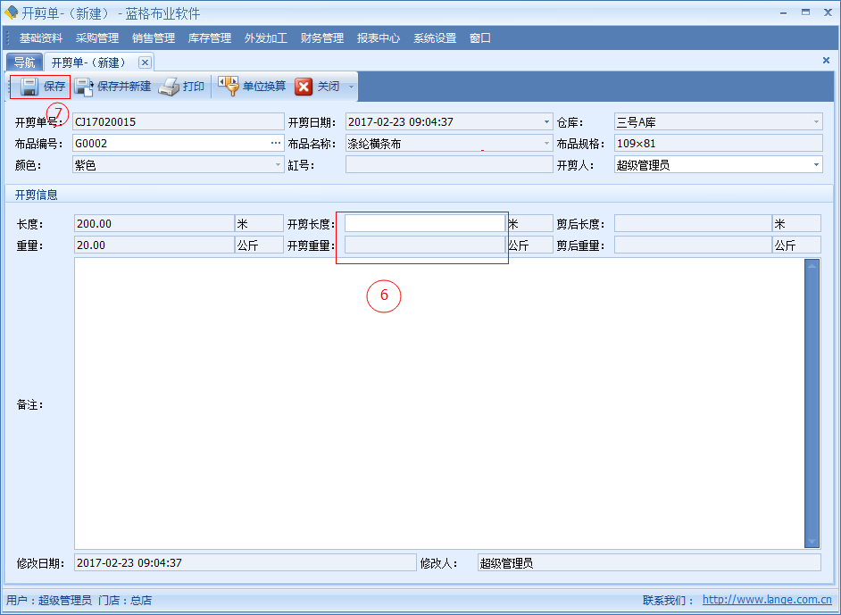 根據(jù)客戶(hù)所需的布品,從庫(kù)存里找到相對(duì)應(yīng)的布品信息,進(jìn)行開(kāi)剪 50 米。 具體步驟如下圖: