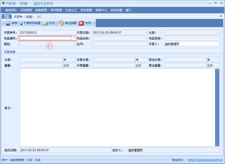 傲藍(lán)布匹行業(yè)管理軟件,開(kāi)剪單主要是對(duì)庫(kù)存里的某一匹布進(jìn)行開(kāi)剪。比如:客戶(hù)要 150 米,庫(kù)存里沒(méi)有 50 米長(zhǎng)度的布品時(shí),