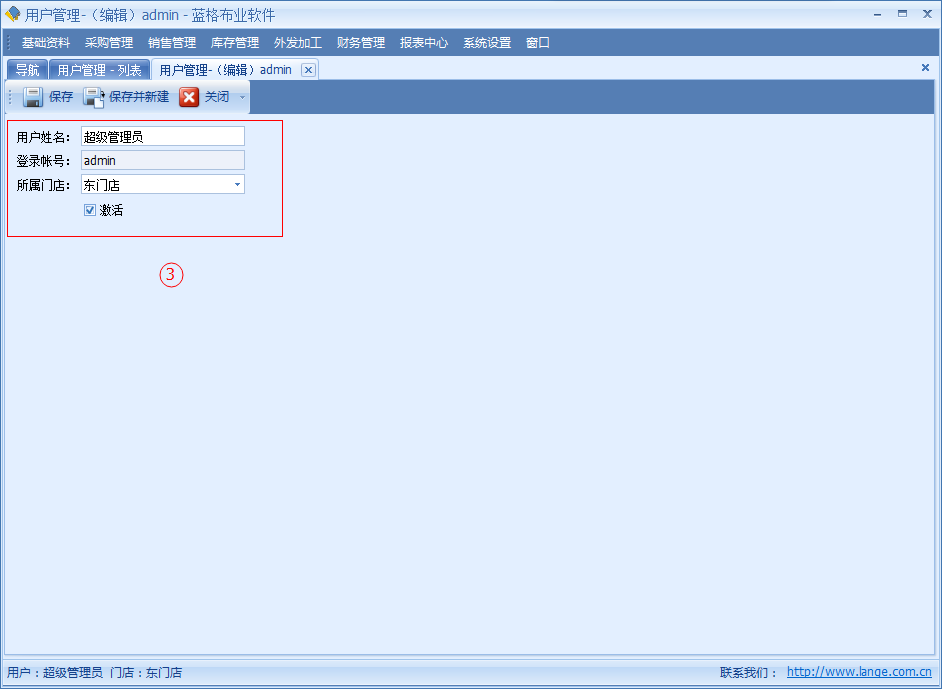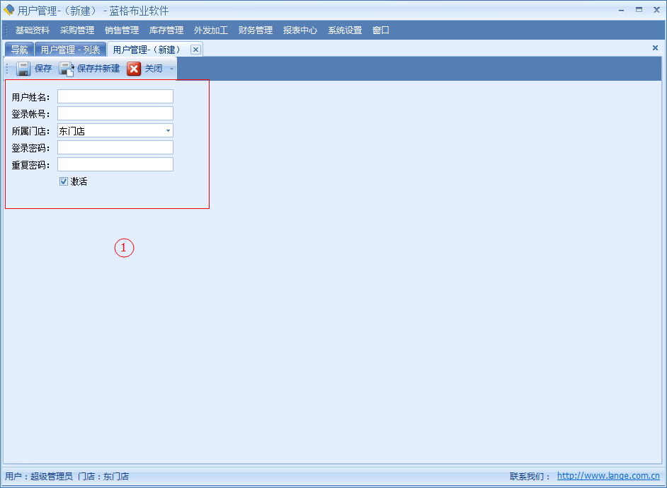 ○2 通過(guò)用戶(hù)管理列表上的【新建】按鈕進(jìn)行客戶(hù)新建