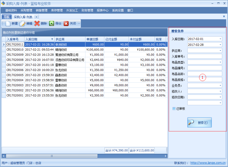 ○1 通過訂單編號或者供應(yīng)商,布品名稱等方式快速查詢。 如下圖: