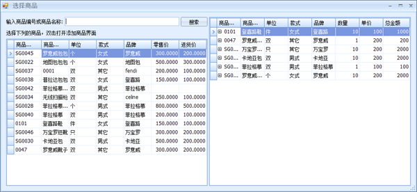 在上圖中點擊【+】會打開選擇商品界面,添加相關的采購商品信息。