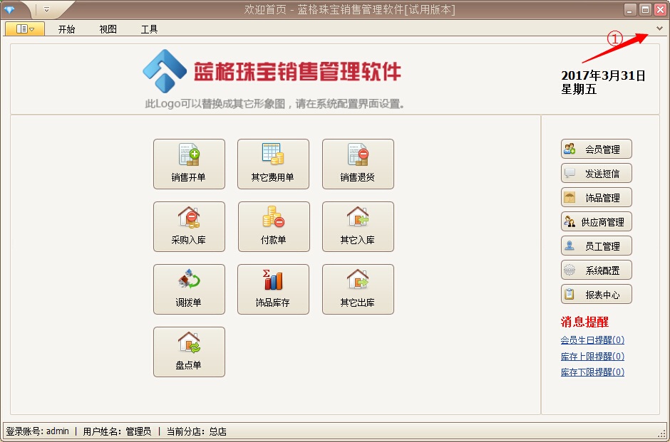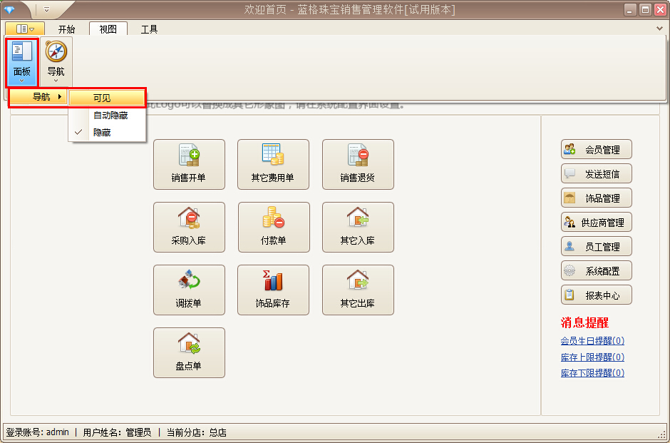 傲藍珠寶零售軟件導航欄異常處理方法