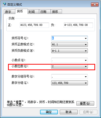 4.進入其他設置,找到貨幣,將小數點的位數默認為2