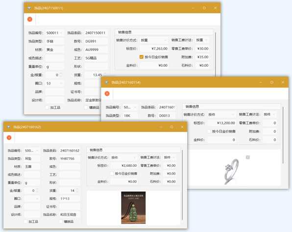 • 基礎(chǔ)資料,會員檔案、采購入庫、銷售開單、飾品盤點