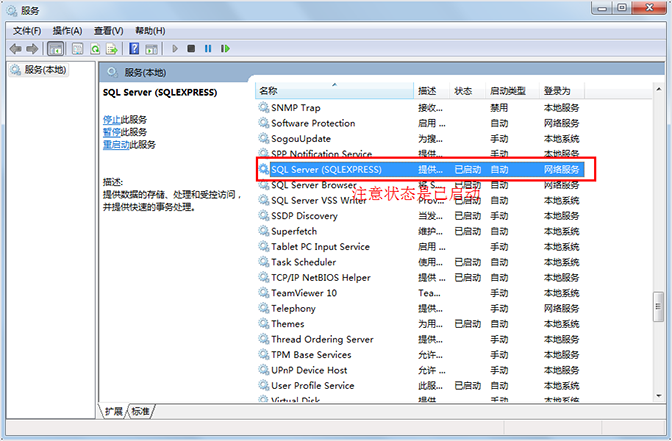 第三步,點(diǎn)擊電腦開(kāi)始-控制面板-管理工具-服務(wù)-SQL server(SQLEXPRESS)