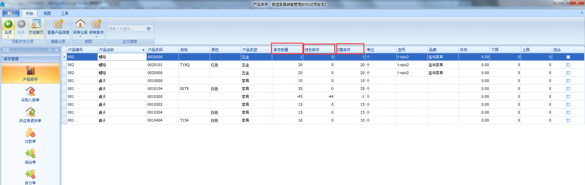 家具進銷存軟件庫存管理為核心的有三個字段的內(nèi)容:
