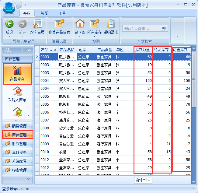 更新時間:2022年01月26日傲藍家具商城管理軟件協(xié)助商場的管理好門店的庫存,連鎖家具店可以在總店中統(tǒng)一管理庫存,方面將各個地方的庫存進行合理的調(diào)配,實現(xiàn)家具銷售大化,那么店內(nèi)產(chǎn)品的庫存如何在軟件中查詢呢?
