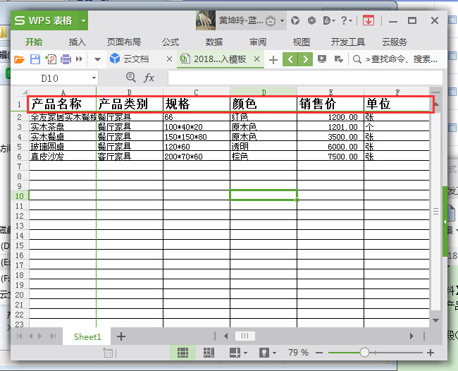 ①已有一個(gè)制成excel表格的家具產(chǎn)品資料信息,如圖: