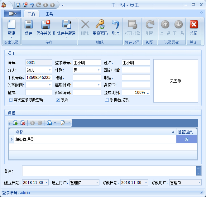 傲藍(lán)家具門店管理軟件協(xié)助做好全面的管理工作,需要將相關(guān)工作人員的信息錄入到系統(tǒng)中,做好系統(tǒng)的管理。