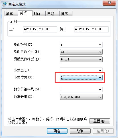 4.進(jìn)入其他設(shè)置,找到貨幣,將小數(shù)點(diǎn)的位數(shù)默認(rèn)為2