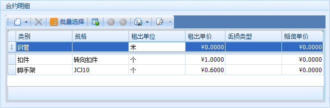 其實(shí),這個(gè)選項(xiàng)功能適用于如鋼管,扣件等材料規(guī)格有很多,但是租出單價(jià)是一致的建筑材料。用戶將此類別材料或設(shè)備勾選了按類別租出,在新建編輯租出或租入合約時(shí),填寫【合約明細(xì)】時(shí)就可以直接選擇租出類別,不用選擇規(guī)格,整個(gè)類別的租出單價(jià)一致。開租出單時(shí)再選擇具體的出庫規(guī)格便可。