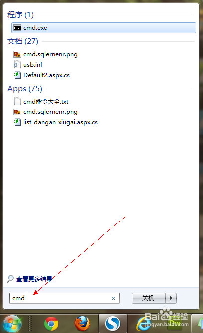 2)在搜索框中輸入cmd字樣,出現(xiàn)下圖。