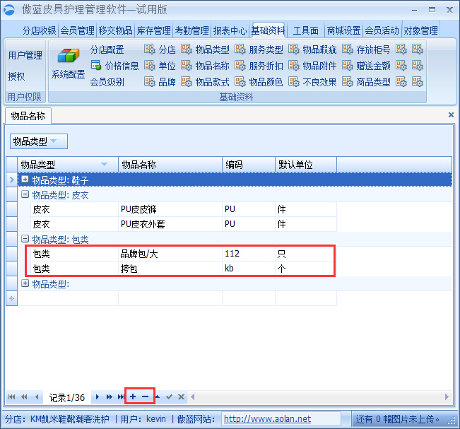 皮具護理店總是設(shè)計很多類型的護理物品如皮衣、箱包皮具、鞋子等等,傲藍皮具護理店管理軟件可以預先在軟件中添加物品的名稱,方便后續(xù)使用軟件進行開單、庫存管理等操作可以快速選擇物品,無需再次輸入,提高工作效率。