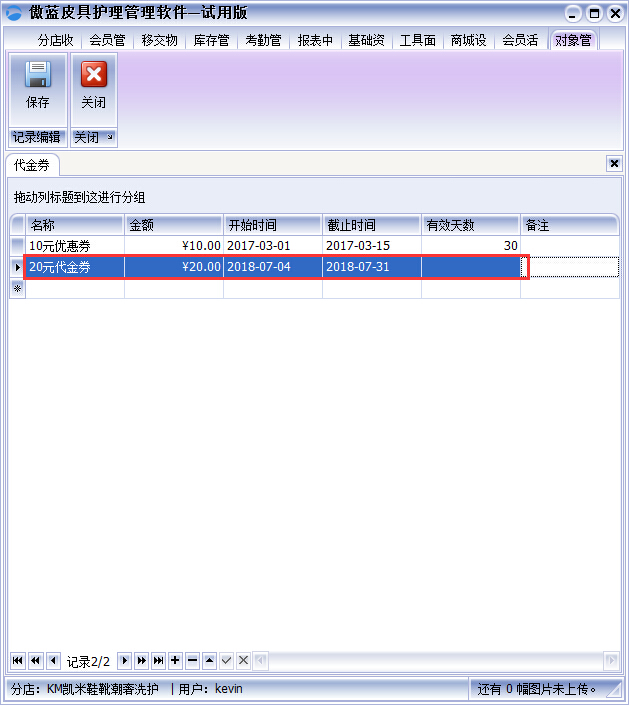 代金券的本質(zhì)就是優(yōu)惠券的一種,是一種短期刺激消費(fèi)者消費(fèi)的工具,與會(huì)員積分構(gòu)成了很多店鋪日常營(yíng)銷的基本工具。皮具護(hù)理店代金券是皮具護(hù)理店在管理會(huì)員優(yōu)惠活動(dòng)時(shí)做的一種促銷方式,在日常購(gòu)物或皮具護(hù)理服務(wù)是抵扣等值的現(xiàn)金,提高客戶消費(fèi)欲望,能在短期內(nèi)提高洗衣店的業(yè)績(jī)。那么皮具護(hù)理店代金券在傲藍(lán)皮具護(hù)理店會(huì)員管理系統(tǒng)上是怎么管理的?