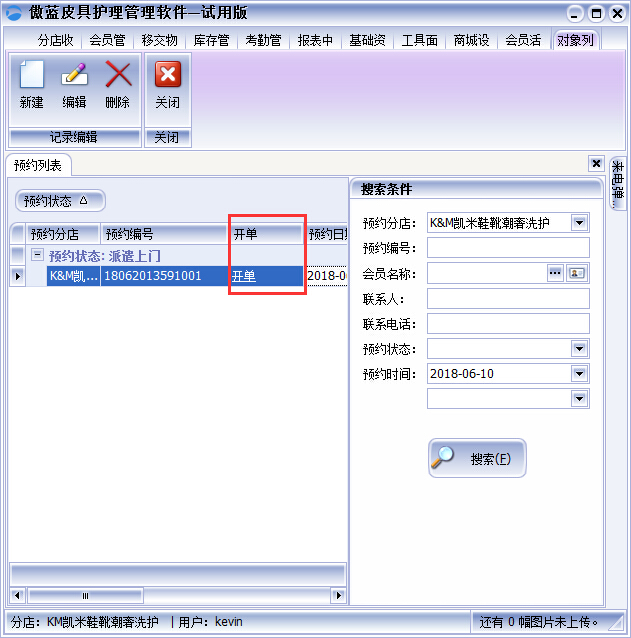 會(huì)員電話預(yù)約,員工可以在預(yù)約單列表點(diǎn)擊開單,系統(tǒng)自動(dòng)帶入會(huì)員信息,無需再次填寫,取物開單便捷高效,如圖: