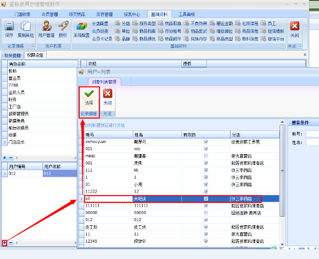 3、然后在用戶(hù)編號(hào)里面的加號(hào)里選擇該角色的員工,如下圖所示:
