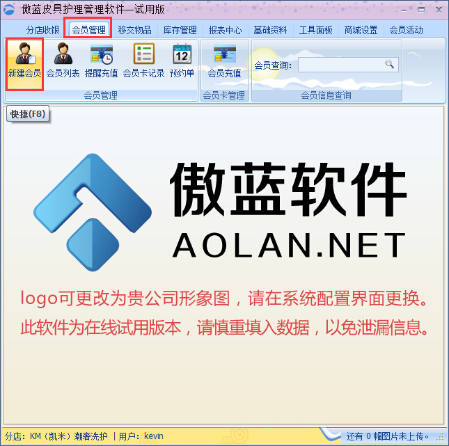 傲藍皮具護理管理軟件可以管理到會員的信息建立,或者導(dǎo)入會員,會員資料的管理,也可以實現(xiàn)為會員充值管理,接下來我們來看如何實現(xiàn):