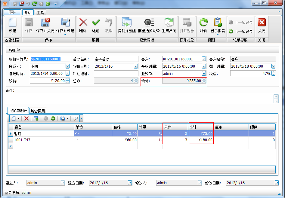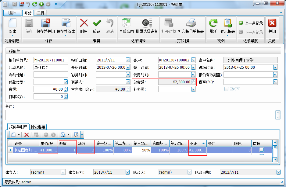 我國目前舞臺設(shè)備租賃的行業(yè),收費(fèi)模式一般有區(qū)分按天和按場的收費(fèi)。根據(jù)客戶的實(shí)際情況,傲藍(lán)舞臺租賃管理軟件有按天收費(fèi)和按場收費(fèi)兩個版本,根據(jù)行業(yè)的特殊性,到天或場的計費(fèi)方式。普通倉儲軟件、財務(wù)軟件無法代替。請看下圖: