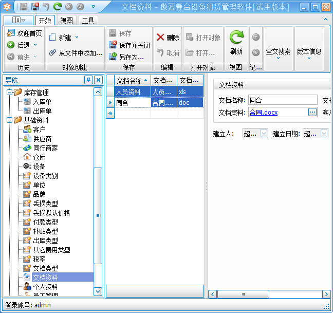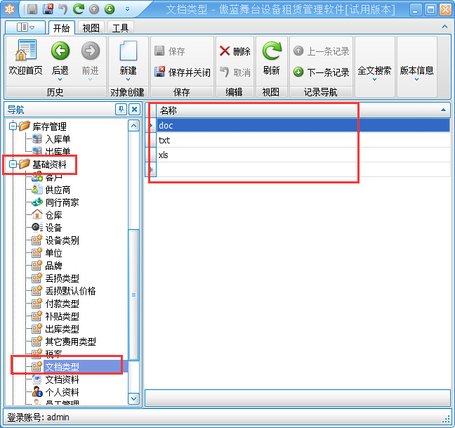 在基礎(chǔ)資料里可以管理文檔類(lèi)型和文檔資料等信息,如下圖所示:
