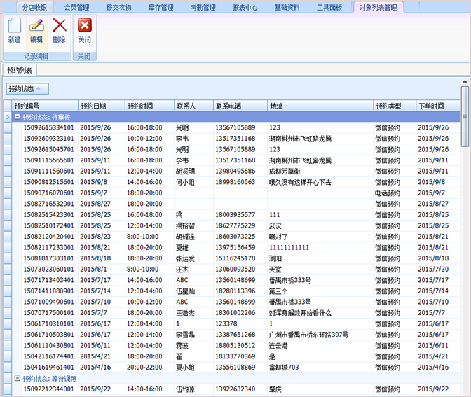 傲藍(lán)洗衣店管理軟件支持客戶電話預(yù)約、微信預(yù)約等方式,準(zhǔn)確記錄會員、預(yù)約時間、聯(lián)系人電話和地址等,員工根據(jù)預(yù)約單按時上門收衣,提高收衣效率;會員微信預(yù)約下單后,軟件自動彈出提醒預(yù)約信息,員工及時跟進(jìn)預(yù)約服務(wù);支持預(yù)約狀態(tài)管理,包括審核、派遣、完成或取消,有效規(guī)范預(yù)約業(yè)務(wù);通過預(yù)約單快速生成收衣開單,節(jié)省收衣開單時間。
