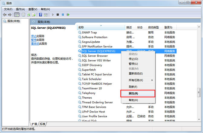 第四步,鼠標(biāo)右擊SQL server(SQLEXPRESS)