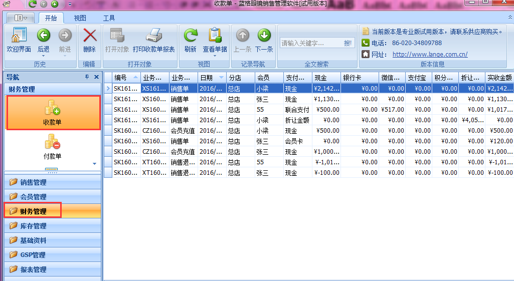 傲藍(lán)眼鏡店管理軟件哪里能統(tǒng)計(jì)每個(gè)支付方式的收入?
